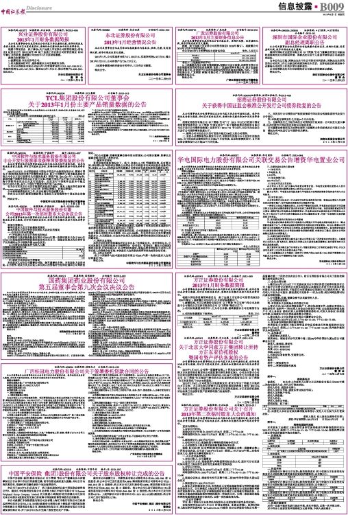 2013年1月经营情况公告