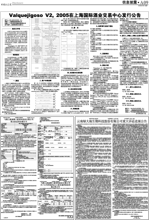 Valquejigoso V2, 2005在上海国际酒业交易中心发行公告