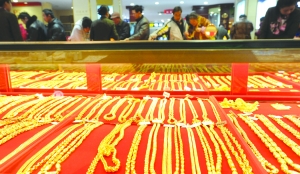 金店销售人员告诉中国证券报记者,“黄金首饰价格和国际金价波动保持一致,上周五国际金价盘中跌破了1600美元/盎司,上周末我们的足金首饰价格从418元/克下调到了411元/克。”