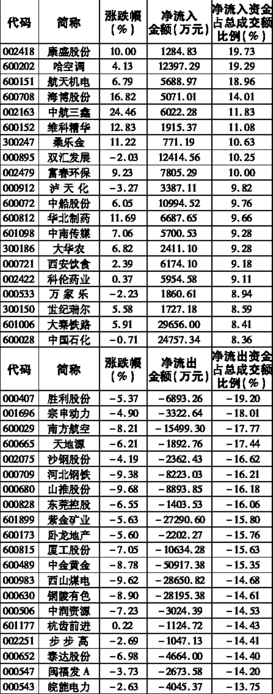 资金变动占成交额比重前20
