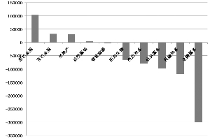 行业板块方面,黑色金属、有色金属、房地产和纺织服装录得资金净流入,金额分别为10.3亿元、2.2亿元、3.1亿元和3385.5万元。遭遇抛压较为严重的板块是金融服务,净流出近30亿元,此外机械设备也净流出逾10亿元。