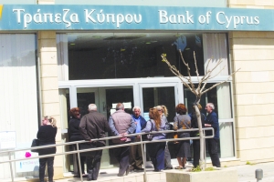 ▲塞浦路斯大众银行一家支行开门的瞬间