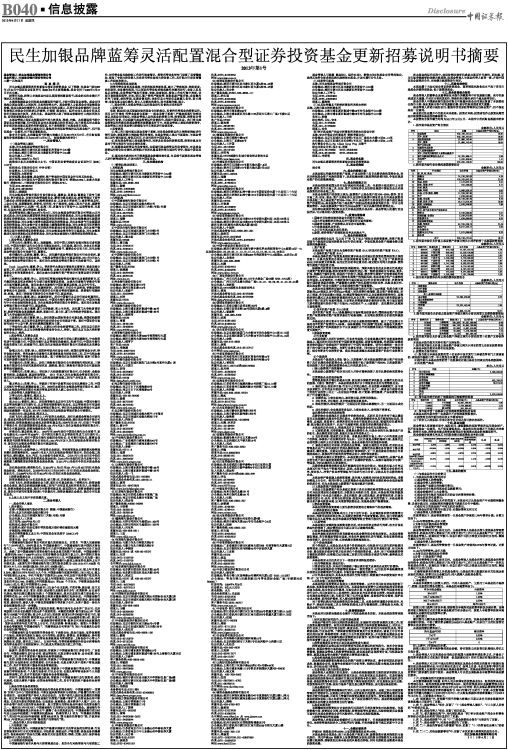 民生加银品牌蓝筹灵活配置混合型证券投资基金更新招募说明书摘要