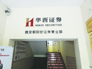 下图:20日,中国证券报记者采访华西证券设在雅安市的营业部。营业部负责人表示,办公大厅不会营业,但会在楼下设立便民服务点,财产安全是可以保障的。 本报记者 孙广友 摄