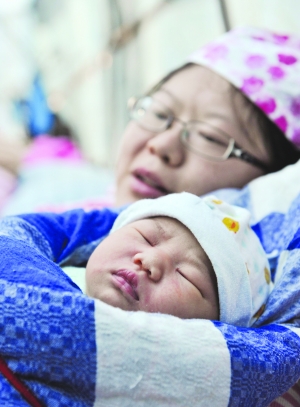图2:宝兴县人民医院临时简易手术室中的震后首个新生儿小名“缘缘”和母亲张静。
