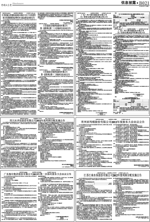 江苏江南水务股份有限公司2012年度利润分配实施公告
