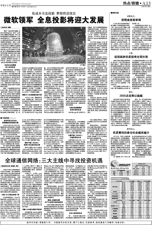 从投资的角度看,面向运营商销售的系统设备商无疑有很大机会,另外,研发生产高端光模块器件的厂商也有很大机会,不过由于40G向100G过度太快,模块器件厂商能否迅速降低成本获取利润是很重要的。
