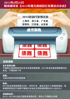 自2009年起,中央财政开始代理地方政府发行债券,当年2000亿元的额度,除分销到交易所市场的7000万元以外,其余债券全部在银行间债券市场发行。2010年的2000亿元地方债,则全部在银行间市场发行。2011年、2012年和2013年年初至今,基本是这种局面。虽然自2011年开始,国家批准上海市、浙江省、广东省和深圳市试点自行发债,2013年又将江苏省和山东省纳入试点范围,不过根据财政部统一规定,地方政府债券的发行场所、发行方式、债券类型和期限等都受到明确限制。银行间债券市场作为地方政府债券发行主市场的地位得到巩固。