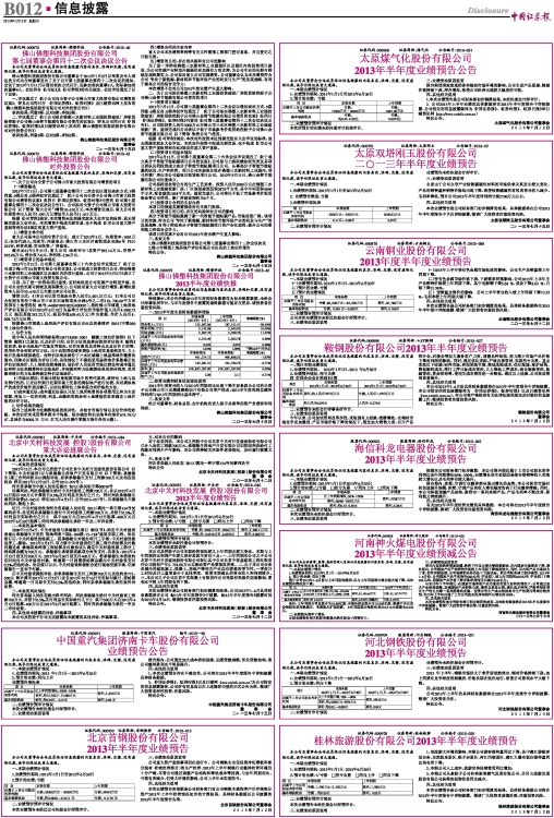 有关2013年半年度经营业绩的具体数据,本公司将在2013年半年度报告中详细披露,提请广大投资者注意投资风险。