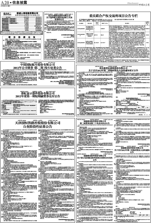 为保证本公司2012年度第一期短期融资券(12彩虹显示CP001,债券代码:041266006)兑付工作的顺利进行,方便投资者及时领取兑付资金,现将有关事宜公告如下: