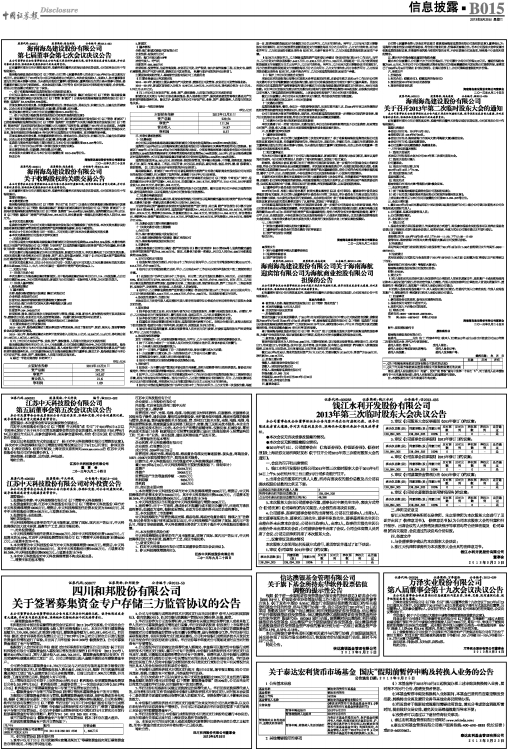●2013年9月5日,公司董事会在《上海证券报》、《中国证券报》、《证券时报》及上海证券交易所网站发布《关于召开公司2013年第三次临时股东大会的通知》。