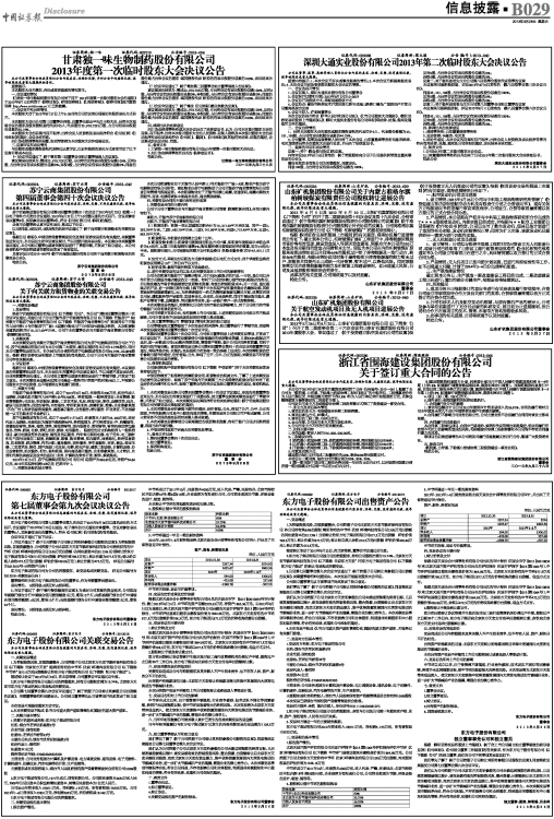 四川东材科技集团股份有限公司关于召开2013年第一次临时股东大会通知的更正公告
