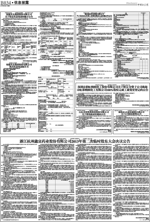 浙江杭州鑫富药业股份有限公司2013年第二次临时股东大会决议公告