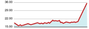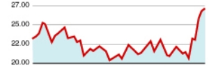 本周上涨25.12%。该股是典型的补涨型品种,因为公司股价在前期创业板高歌猛进之时,持续表现萎靡。