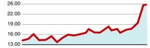 本周涨幅26.82%。受雾霾天气影响,煤制天然气成为市场关注的焦点,产业龙头煤气化得到热钱追捧。