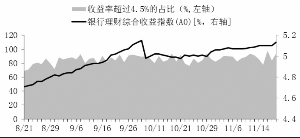 注:2013年11月20日金牛银行理财综合收益指数(A0)为5.16%,相比上期数据上涨3BP,预期收益率超4.5%的产品占总发行量的94.12%。 数据来源:金牛理财网