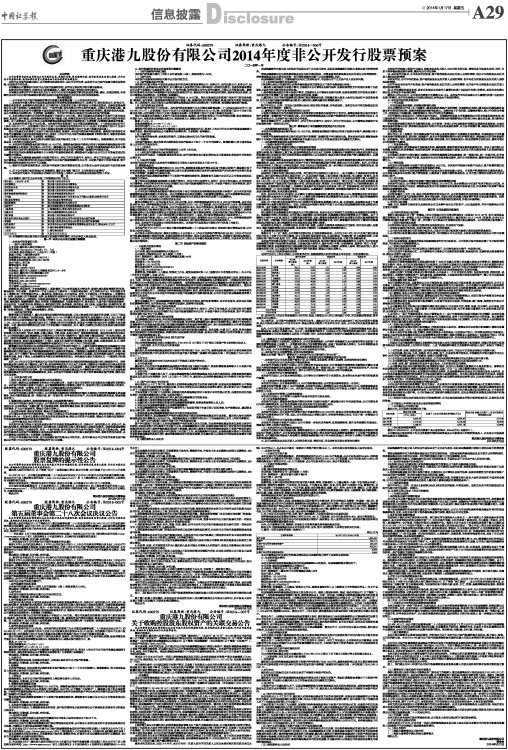 重庆港九股份有限公司2014年度非公开发行股票预案
