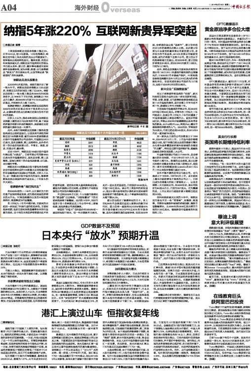 纳指5年涨220% 互联网新贵异军突起