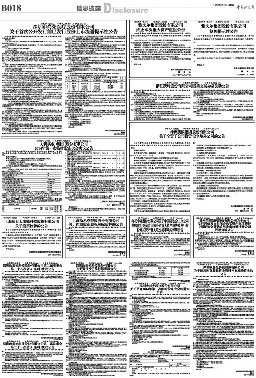 2、公司郑重提醒投资者关注公司于2014年1月29日发布的《上市首日风险提示公告》所列示的各项风险因素;