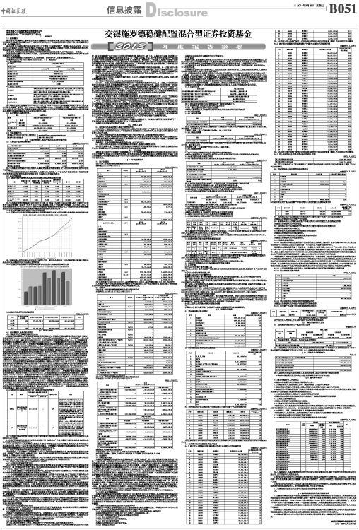 普华永道中天会计师事务所(特殊普通合伙)对交银施罗德稳健配置混合型证券投资基金2013年12月31日的资产负债表,2013年度的利润表、所有者权益(基金净值)变动表以及财务报表附注出具了标准无保留意见的审计报告{普华永道中天审字(2014)第20523号}。投资者可通过本基金年度报告正文查看该审计报告全文。