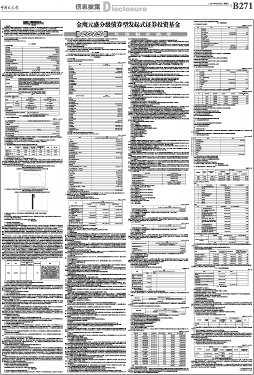 注:金鹰元盛分级债券型发起式证券投资基金简称: 金鹰元盛分级债券,场内简称:金鹰元盛,基金代码:162108 。其中金鹰元盛分级债券型发起式证券投资基金之元盛A 份额,基金简称:元盛 A,基金代码:162109;金鹰元盛分级债券型发起式证券投资基金之元盛 B 份额,基金简称:元盛 B;场内简 称:元盛 B;基金代码:150132 。
