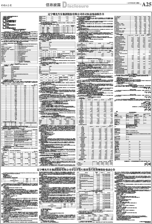 上市公司:辽宁曙光汽车集团股份有限公司 上市地点:上海证券交易所 证券简称:曙光股份 证券代码:600303 信息披露义务人 名 称:辽宁曙光集团有限责任公司 住 所:沈阳市浑南新区天赐街7号 通讯地址:沈阳市浑南新区天赐街7号 一致行动人(一) 姓 名:李进巅 住 所:丹东市振兴区八纬路74号 通讯地址:丹东市振安区曙光路50号 一致行动人(二) 姓 名:李海阳 住 所:丹东市振兴区八纬路74号 通讯地址:丹东市振安区曙光路50号 财务顾问:长江证券承销保荐有限公司 签署日期:二〇一四年三月X日 声 明 一、本报告系根据《中华人民共和国证券法》、《上市公司收购管理办法》 及《公开发行证券的公司信息披露内容与格式准则第 15 号-权益变动报告书》 及其他相关法律、法规编写。 二、依据《中华人民共和国证券法》、《上市公司收购管理办法》的规定, 本报告书已全面披露了信息披露义务人及其一致行动人在辽宁曙光汽车集团股份有限公司拥有权益的情况。 三、截至本报告书签署之日,除本报告书披露的持股信息外,信息披露义务人及其一致行动人没有通过任何其他方式在辽宁曙光汽车集团股份有限公司拥有权益。 四、信息披露义务人及其一致行动人签署本报告已获得必要的授权和批准,其履行亦不违反信息披露义务人及其一致行动人公司章程或内部规则中的任何条款,或与之相冲突。 五、本次交易是根据本报告所载明的资料进行的。除辽宁曙光集团有限责任公司和所聘请的专业机构外,没有委托或者授权任何其他人提供未在本报告书中列载的信息和对本报告书做出任何解释或者说明。 六、信息披露义务人的决策机构全体成员及其一致行动人共同承诺本报告书不存在虚假记载、误导性陈述或重大遗漏,并对其真实性、准确性、完整性承担个别和连带的法律责任。 第一节 释义 本申请报告中,除非另有所指,下列词语之特定含义如下: | 本次收购/本次交易 | 指 | 辽宁曙光集团有限责任公司认购辽宁曙光汽车集团股份有限公司非公开发行股票 | | 本报告书 | 指 | 辽宁曙光汽车集团股份有限公司详式权益变动报告书 | | 上市公司、公司、发行人、曙光股份 | 指 | 辽宁曙光汽车集团股份有限公司 | | 信息披露义务人、曙光集团 | 指 | 辽宁曙光集团有限责任公司 | | 曙光集团及其一致行动人、信息披露义务人及其一致行动人 | 指 | 辽宁曙光集团有限责任公司、李进巅、李海阳 | | 黄海特种专用车 | 指 | 丹东黄海特种专用车有限责任公司 | | 丹东黄海汽车 | 指 | 丹东黄海汽车有限责任公司 | | 中国证监会 | 指 | 中国证券监督管理委员会 | | 上交所 | 指 | 上海证券交易所 | | 最近三年一期 | 指 | 2010、2011、2012年和2013年1-9月 | | 《公司法》 | 指 | 《中华人民共和国公司法》 | | 《证券法》 | 指 | 《中华人民共和国证券法》 | | 《收购办法》 | 指 | 《上市公司收购管理办法》 | | 《第16号准则》 | 指 | 《公开发行证券的公司信息披露内容与格