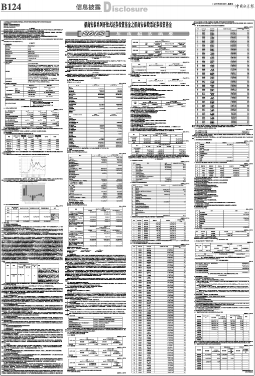 (本系列基金由招商安泰股票证券投资基金、招商安泰平衡型证券投资基金和招商安泰债券投资基金组成) 2013年12月31日 基金管理人:招商基金管理有限公司 基金托管人:招商银行股份有限公司 送出日期:2014年3月28日 §1 重要提示 基金管理人的董事会、董事保证本报告所载资料不存在虚假记载、误导性陈述或重大遗漏,并对其内容的真实性、准确性和完整性承担个别及连带的法律责任。本年度报告已经三分之二以上独立董事签字同意,并由董事长签发。 基金托管人招商银行股份有限公司根据本基金合同规定,于2014年3月26日复核了本报告中的财务指标、净值表现、利润分配情况、财务会计报告、投资组合报告等内容,保证复核内容不存在虚假记载、误导性陈述或者重大遗漏。 基金管理人承诺以诚实信用、勤勉尽责的原则管理和运用基金资产,但不保证基金一定盈利。 基金的过往业绩并不代表其未来表现。投资有风险,投资者在作出投资决策前应仔细阅读本基金的招募说明书及其更新。 本年度报告摘要摘自年度报告正文,投资者欲了解详细内容,应阅读年度报告正文。 本报告财务资料已经审计,德勤华永会计师事务所(特殊普通合伙)为本基金出具了2013年度无保留意见的审计报告,请投资者注意阅读。 本报告期自2013年1月1日起至12月31日止。 §2 基金简介 2.1 基金基本情况 ■ 2.2 基金产品说明 ■ 2.3 基金管理人和基金托管人 ■ 2.4 信息披露方式 ■ §3 主要财务指标、基金净值表现及利润分配情况 3.1 主要会计数据和财务指标 金额单位:人民币元 ■ 注:1、所述基金业绩指标不包括持有人认购或交易基金的各项费用,计入费用后实际收益水平要低于所列数字; 2、本期已实现收益指基金本期利息收入、投资收益、其他收入(不含公允价值变动收益)扣除相关费用后的余额,本期利润为本期已实现收益加上本期公允价值变动收益; 3、期末可供分配利润,采用期末资产负债表中未分配利润与未分配利润中已实现部分的孰低数。 3.2 基金净值表现 3.2.1 基金份额净值增长率及其与同期业绩比较基准收益率的比较 ■ 注:业绩比较基准收益率=75%×上证180指数收益率+20%×中信标普国债指数收益率+5%×同业存款利率,业绩比较基准在每个交易日实现再平衡。 3.2.2 自基金合同生效以来基金份额累计净值增长率变动及其与同期业绩比较基准收益率变动的比较 ■ 注:招商安泰股票的债券/股票配置范围为:债券20%-30%,股票65%-80%。根据本系列基金合同规定,本基金设立后,投资建仓期为三个月,特殊情况下不超过六个月。本基金于2003年4月28日成立,建仓期结束时相关比例均符合上述规定的要求。 3.2.3 过去五年基金每年净值增长率及其与同期业绩比较基准收益率的比较 ■ 3.3 过去三年基金的利润分配情况 单位:人民币元 ■ §4 管理人报告 4.1 基金管理人及基金经理情况 4.1.1 基金管理人及其管理基金的经验 招商基金管理有限公司于2002年12月27日经中国证监会(2002)100号文批准设立,是中国第一家中外合资基金管理公司。公司的经营范围包括发起设立基金、基金管理业务和中国证监会批准的其它业务。 经招商基金管理有限公司(以下简称“本公司”)股东会审议通过,并经中国证券监督管理委员会证监许可[2013]1074号文批复同意,本公司原股东荷兰投资公司(ING Asset Management B.V.)将其持有的本公司21.6%股权转让给招商银行股份有限公司、11.7%股权转让给招商证券股份有限公司,截止2013年10月份,本次股权转让的相关工商变更登记手续已办理完毕。 目前,本公司的股东股权结构为:招商银行股份有限公司持有公司全部股权的55%,招商证券股份有限公司持有公司全部股权的45%。公司注册资本金为2.1亿元人民币。招商基金拥有两家全资子公司,分别为招商财富资产管理有限公司和招商资产管理(香港)有限公司。 截至2013年12月31日,本基金管理人共管理三十五只共同基金,具体如下:从2003年4月28日起管理招商安泰系列开放式证券投资基金(含招商安泰股票证券投资基金、招商安泰平衡型证券投资基金、招商安泰债券投资基金);从2004年1月14日起管理招商现金增值开放式证券投资基金;从2004年6月1日起开始管理招商先锋证券投资基金;从2005年11月17日起开始管理招商优质成长股票型证券投资基金(LOF);从2006年7月11日起开始管理招商安本增利债券型证券投资基金;从2007年3月30日起开始管理招商核心价值混合型证券投资基金;从2008年6月19日起开始管理招商大盘蓝筹股票型证券投资基金;从2008年10月22日起开始管理招商安心收益债券型证券投资基金;从2009年6月19日起开始管理招商行业领先股票型证券投资基金;从2009年12月25日起开始管理招商中小盘精选股票型证券投资基金;从2010年3月25日起开始管理招商全球资源股票型证券投资基金(QDII);从2010年6月22日起开始管理招商深证100指数证券投资基金;从2010年6月25日起开始管理招商信用添利债券型证券投资基金;从2010年12月8日开始管理上证消费80交易型开放式指数证券投资基金及招商上证消费80交易型开放式指数证券投资基金联接基金;从2011年2月11日起开始管理招商标普金砖四国指数证券投资基金(LOF);从2011年3月17日起开始管理招商安瑞进取债券型证券投资基金;从2011年6月27日开始管理深证电子信息传媒产业(TMT)50交易型开放式指数证券投资基金及招商深证