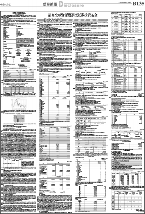 本托管人依法对招商基金管理有限公司编制和披露的招商全球资源股票型证券投资基金2013年年度报告中财务指标、净值表现、利润分配情况、财务会计报告、投资组合报告等内容进行了核查,以上内容真实、准确和完整。