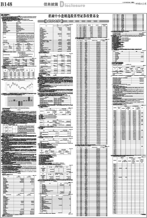 基金管理人:招商基金管理有限公司 基金托管人:中国工商银行股份有限公司 送出日期:2014年3月28日 §1 重要提示 基金管理人的董事会、董事保证本报告所载资料不存在虚假记载、误导性陈述或重大遗漏,并对其内容的真实性、准确性和完整性承担个别及连带的法律责任。本年度报告已经三分之二以上独立董事签字同意,并由董事长签发。 基金托管人中国工商银行股份有限公司根据本基金合同规定,于2014年3月26日复核了本报告中的财务指标、净值表现、利润分配情况、财务会计报告、投资组合报告等内容,保证复核内容不存在虚假记载、误导性陈述或者重大遗漏。 基金管理人承诺以诚实信用、勤勉尽责的原则管理和运用基金资产,但不保证基金一定盈利。 基金的过往业绩并不代表其未来表现。投资有风险,投资者在作出投资决策前应仔细阅读本基金的招募说明书及其更新。 本年度报告摘要摘自年度报告正文,投资者欲了解详细内容,应阅读年度报告正文。 本报告财务资料已经审计,德勤华永会计师事务所(特殊普通合伙)为本基金出具了2013年度无保留意见的审计报告,请投资者注意阅读。 本报告期自2013年1月1日起至12月31日止。 §2 基金简介 2.1 基金基本情况 ■ 2.2 基金产品说明 ■ 2.3 基金管理人和基金托管人 ■ 2.4 信息披露方式 ■ §3 主要财务指标、基金净值表现及利润分配情况 3.1 主要会计数据和财务指标 金额单位:人民币元 ■ 注:1、基金业绩指标不包括持有人认(申)购或交易基金的各项费用,计入费用后实际收益水平要低于所列数字; 2、本期已实现收益指基金本期利息收入、投资收益、其他收入(不含公允价值变动收益)扣除相关费用后的余额,本期利润为本期已实现收益加上本期公允价值变动收益; 3、期末可供分配利润,采用期末资产负债表中未分配利润与未分配利润中已实现部分的孰低数; 3.2 基金净值表现 3.2.1 基金份额净值增长率及其与同期业绩比较基准收益率的比较 ■ 注:业绩比较基准收益率=40%×天相中盘指数收益率+40%×天相小盘指数收益率+ 20%×中信标普全债指数收益率,业绩比较基准在每个交易日实现再平衡。 3.2.2 自基金合同生效以来基金份额累计净值增长率变动及其与同期业绩比较基准收益率变动的比较 ■ 注:根据基金合同第十一条(二)投资范围的规定,本基金将基金资产的60%-95%投资于股票等权益类资产(其中,权证投资比例不超过基金资产净值的3%),将基金资产的5%-40%投资于债券和现金等固定收益类品种(其中,现金或到期日在一年以内的政府债券不低于基金资产净值的5%)。本基金于2009年12月25日成立,自基金成立日起6个月内为建仓期,建仓期结束时相关比例均符合上述规定的要求。 3.2.3 自基金合同生效以来基金每年净值增长率及其与同期业绩比较基准收益率的比较 ■ 注:本基金于2009年12月25日成立,截至2009年12月31日成立未满1年,故成立当年的净值增长率按当年实际存续期计算。 3.3 过去三年基金的利润分配情况 本基金过去三年未进行利润分配。 §4 管理人报告 4.1 基金管理人及基金经理情况 4.1.1 基金管理人及其管理基金的经验 招商基金管理有限公司于2002年12月27日经中国证监会(2002)100号文批准设立,是中国第一家中外合资基金管理公司。公司的经营范围包括发起设立基金、基金管理业务和中国证监会批准的其它业务。 经招商基金管理有限公司(以下简称“本公司”)股东会审议通过,并经中国证券监督管理委员会证监许可[2013]1074号文批复同意,本公司原股东荷兰投资公司(ING Asset Management B.V.)将其持有的本公司21.6%股权转让给招商银行股份有限公司、11.7%股权转让给招商证券股份有限公司,截止2013年10月份,本次股权转让的相关工商变更登记手续已办理完毕。 目前,本公司的股东股权结构为:招商银行股份有限公司持有公司全部股权的55%,招商证券股份有限公司持有公司全部股权的45%。公司注册资本金为2.1亿元人民币。招商基金拥有两家全资子公司,分别为招商财富资产管理有限公司和招商资产管理(香港)有限公司。 截至2013年12月31日,本基金管理人共管理三十五只共同基金,具体如下:从2003年4月28日起管理招商安泰系列开放式证券投资基金(含招商安泰股票证券投资基金、招商安泰平衡型证券投资基金、招商安泰债券投资基金);从2004年1月14日起管理招商现金增值开放式证券投资基金;从2004年6月1日起开始管理招商先锋证券投资基金;从2005年11月17日起开始管理招商优质成长股票型证券投资基金(LOF);从2006年7月11日起开始管理招商安本增利债券型证券投资基金;从2007年3月30日起开始管理招商核心价值混合型证券投资基金;从2008年6月19日起开始管理招商大盘蓝筹股票型证券投资基金;从2008年10月22日起开始管理招商安心收益债券型证券投资基金;从2009年6月19日起开始管理招商行业领先股票型证券投资基金;从2009年12月25日起开始管理招商中小盘精选股票型证券投资基金;从2010年3月25日起开始管理招商全球资源股票型证券投资基金(QDII);从2010年6月22日起开始管理招商深证100指数证券投资基金;从2010年6月25日起开始管理招商信用添利债券型证券投资基金;从2010年12月8日开始管理上证消费80交易型开放式指数证券投资基金及招商上证消费80交易型开放式指数证券投资基金联接基金;从2011年2月11日起开始管理招商标普