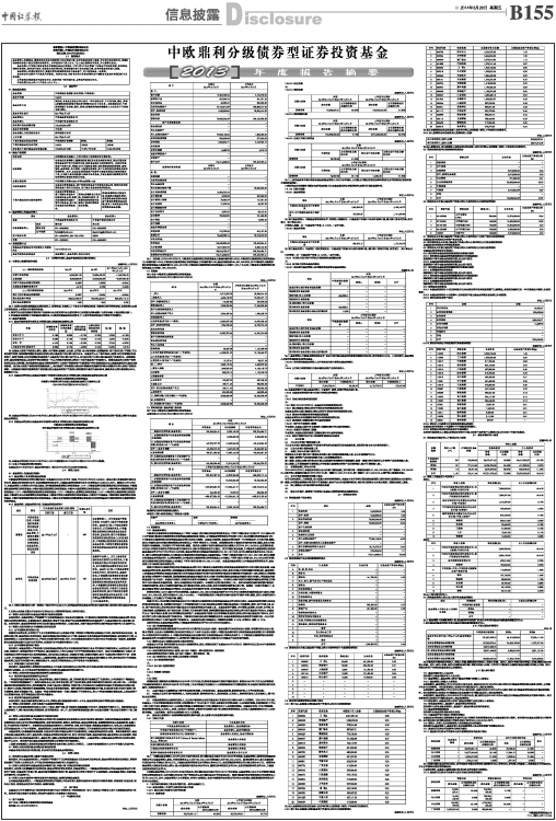 注:1. 报告截止日2013年12月31日,中欧鼎利分级债券型证券投资基金之基础份额净值1.089元,中欧鼎利分级债券型证券投资基金之A份额净值1.108元,中欧鼎利分级债券型证券投资基金之B份额净值1.045;基金份额总额145,630,806.62份,其中中欧鼎利分级债券型证券投资基金之基础份额120,883,407.62份,中欧鼎利分级债券型证券投资基金之A份额17,323,179.00份,中欧鼎利分级债券型证券投资基金之B份额7,424,220.00份。