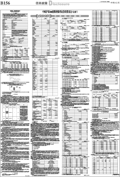 基金管理人:中欧基金管理有限公司 基金托管人:兴业银行股份有限公司 送出日期:2014年03月28日 §1 重要提示 ■ §2 基金简介 2.1 基金基本情况 ■ 2.2 基金产品说明 ■ 2.3 基金管理人和基金托管人 ■ 2.4 信息披露方式 ■ §3 主要财务指标、基金净值表现及利润分配情况 3.1 主要会计数据和财务指标 金额单位:人民币元 ■ 注:1、本期已实现收益指基金本期利息收入、投资收益、其他收入(不含公允价值变动收益)扣除相关费用后的余额,本期利润为本期已实现收益加上本期公允价值变动收益。 2、期末可供分配利润采用期末资产负债表中未分配利润与未分配利润中已实现部分的孰低数(为期末余额,不是当期发生数)。 3、所述基金业绩指标不包括基金份额持有人认购或交易基金的各项费用,计入费用后实际收益水平要低于所列数字。 3.2 基金净值表现 3.2.1 基金份额净值增长率及其与同期业绩比较基准收益率的比较 ■ 注:本基金大类资产的投资比例为:股票资产占基金资产的90%-95%,其中被动投资于标的指数成份股及备选成份股的比例不低于基金资产的80%;现金或者到期日在一年以内的政府债券不少于基金资产净值的5%;其他金融工具的投资比例符合法律法规和监管机构的规定。根据本基金的大类资产投资标的及具体比例范围,具有较强代表性的沪深300指数成为股票资产的标的指数,比较基准中股票的权重95%。比较基准每个交易日进行一次再平衡,每个交易日在加入损益后根据设定的权重比例进行大类资产之间的再平衡,使大类资产比例保持恒定。 3.2.2 自基金合同生效以来基金份额累计净值增长率变动及其与同期业绩比较基准收益率变动的比较 中欧沪深300指数增强型证券投资基金(LOF) 份额累计净值增长率与业绩比较基准收益率历史走势对比图 (2010年06月24日-2013年12月31日) ■ 注:本基金合同生效日为2010年6月24日,建仓期为2010年6月24日至2010年12月23日,建仓期结束时各项资产配置比例符合本基金基金合同规定。 3.2.3 自基金合同生效以来基金每年净值增长率及其与同期业绩比较基准收益率的比较 中欧沪深300指数增强型证券投资基金(LOF) 每年基金净值增长率与同期业绩比较基准收益率的对比图 ■ 注:本基金合同生效日为2010年6月24日,2010年度数据为2010年6月24日至2010年12月31日数据。 3.3 过去三年基金的利润分配情况 本基金过去三年未进行利润分配。 §4 管理人报告 4.1 基金管理人及基金经理情况 4.1.1 基金管理人及其管理基金的经验 中欧基金管理有限公司经中国证监会(证监基字[2006]102号文)批准,于2006年7月19日正式成立。股东为意大利意联银行股份合作公司、国都证券有限责任公司、北京百骏投资有限公司、万盛基业投资有限责任公司,注册资本为1.88亿元人民币。截至2013年12月31日,本基金管理人共管理16只开放式基金,即中欧新趋势股票型证券投资基金(LOF)、中欧新蓝筹灵活配置混合型证券投资基金、中欧稳健收益债券型证券投资基金、中欧价值发现股票型证券投资基金、中欧中小盘股票型证券投资基金(LOF)、中欧沪深300指数增强型证券投资基金(LOF)、中欧增强回报债券型证券投资基金(LOF)、中欧新动力股票型证券投资基金(LOF)、中欧鼎利分级债券型证券投资基金、中欧盛世成长分级股票型证券投资基金、中欧信用增利分级债券型证券投资基金、中欧货币市场基金、中欧纯债分级债券型证券投资基金、中欧价值智选回报混合型证券投资基金、中欧成长优选回报灵活配置混合型发起式证券投资基金和中欧纯债添利分级债券型证券投资基金。 4.1.2 基金经理(或基金经理小组)及基金经理助理简介 ■ 注:1、任职日期和离任日期一般情况下指公司作出决定之日;若该基金经理自基金合同生效日起即任职,则任职日期为基金合同生效日。 2、证券从业的含义遵从行业协会《证券业从业人员资格管理办法》的相关规定。 4.2 管理人对报告期内本基金运作遵规守信情况的说明 本报告期内,本基金管理人严格遵循了《证券投资基金法》及其各项实施细则、《中欧沪深300指数增强型证券投资基金(LOF)基金合同》和其他相关法律法规的规定,本着诚实信用、勤勉尽责、取信于市场、取信于社会的原则管理和运用基金资产,为基金份额持有人谋求最大利益。本报告期内,基金投资管理符合有关法规和基金合同的规定,无违法违规、未履行基金合同承诺或损害基金份额持有人利益的行为。 4.3 管理人对报告期内公平交易情况的专项说明 4.3.1 公平交易制度和控制方法 根据相关法律法规,公司制订了《公平交易管理办法》以确保公司旗下管理的不同投资组合得到公平对待,保护投资者合法权益。在投资决策方面,基金经理共享研究报告、投研体系职权划分明确且互不干预、各基金持仓及交易信息等均能有效隔离;在交易执行方面,以系统控制和人工审阅相结合的方式,严控反向交易和同向交易;另外,中央交易室在交易执行过程中对公平交易实施一线监控,监察稽核部也会就投资交易行为进行分析和评估,定期进行公平交易的内部审计工作。 4.3.2 公平交易制度的执行情况 报告期内,本基金管理人严格按照《证券投资基金管理公司公平交易制度指导意见》及公司内部相关制度等规定,从研究分析、投资决策、交易执行、事后监控等环节严格把关,通过系统和人工等方