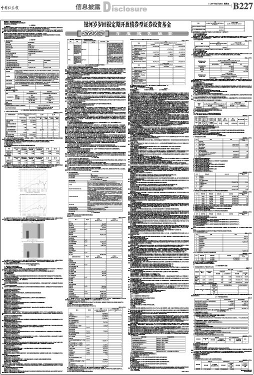 注:本基金合同生效日为2013年8月9日,根据《银河岁岁回报定期开放债券型证券投资基金基金合同》规定,本基金应自基金合同生效日起六个月内使基金的投资组合比例符合基金合同的有关规定。 截止本报告期末,本基金成立尚未满一年。