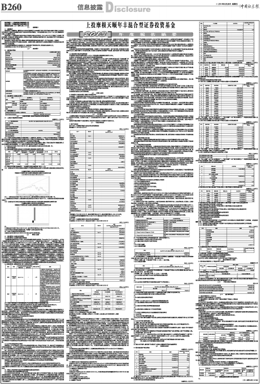 上投摩根天颐年丰混合型证券投资基金2013年度财务会计报告已由普华永道中天会计师事务所审计、注册会计师汪棣、王灵签字出具了“无保留意见的审计报告”(编号:普华永道中天审字(2014)第20701号)。