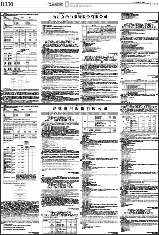 《乔治白:关于召开2013年股东大会的公告》详见2014年3月28日巨潮资讯网(www.cninfo.com.cn)及《中国证券报》、《证券时报》、《证券日报》、《上海证券报》。