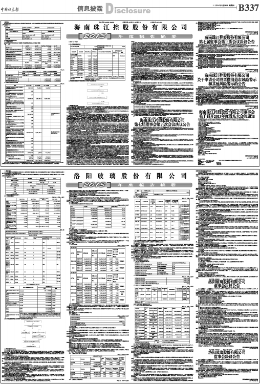 议案内容详见2014年3月28日《中国证券报》及巨潮资讯网海南珠江控股股份有限公司董事会公告及监事会公告。