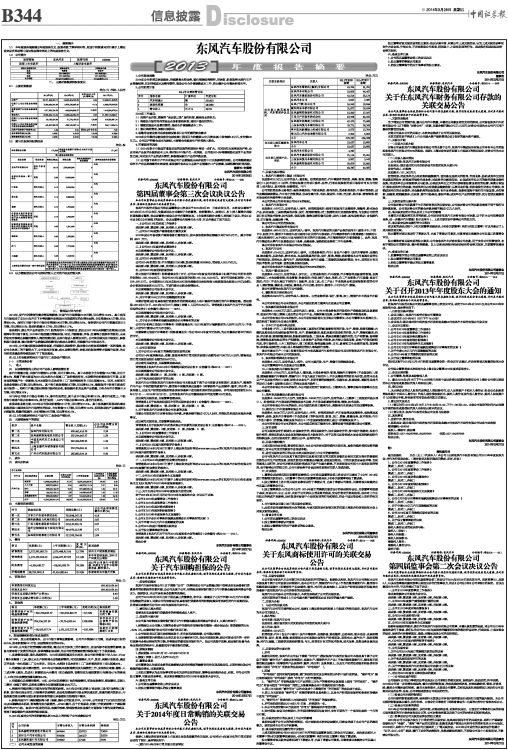 详情请见2014年3月28日刊登于上海证券交易所网站www.sse.com.cn的《东风汽车2013年年度报告全文》及《东风汽车2013年年度报告摘要》。