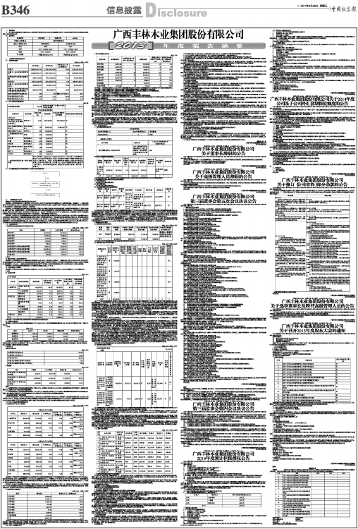 注2:百色造林计划的造林进度跨度较长,造林计划进度低于农户取得土地租金的预期,因此部分农民要求收回土地。另外随着广西集体林权制度主体改革全面铺开,农户取得林权证后其他经营机会增加,因此部分农户要求收回公司尚未实施造林的合同林地,导致部分合同的实施存在困难,实际造林未达到计划进度。因原计划造林的16个乡(镇、林场)用于桉树原料林建设的规划面积少,经2012年5月17日公司召开的第二届董事会第十三次会议审议批准,该项目实施地点扩大为广西全区范围。