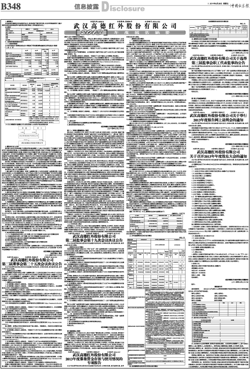 《武汉高德红外股份有限公司关于召开2013年年度股东大会的通知》详见《中国证券报》、《上海证券报》、《证券时报》、《证券日报》及巨潮资讯网(http://www.cninfo.com.cn)。