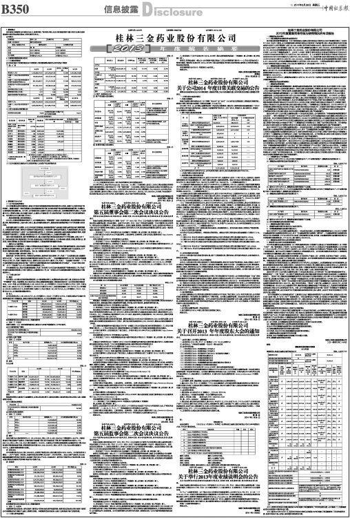 【详细内容见中国证券报、上海证券报、证券时报、证券日报及巨潮资讯网(http://www.cninfo.com.cn)刊登的《桂林三金药业股份有限公司关于召开2013 年年度股东大会的通知公告》】