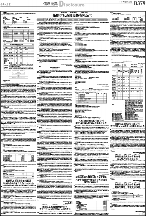拓维信息系统股份有限公司(以下简称“本公司”或“公司”)第五届董事会第九次会议于 2014 年 03 月 16 日通过邮件、传真方式发出会议通知,并于 2014 年 03 月 26 日以现场表决的方式召开。本次会议应表决董事 9 人,实际表决董事 9 人,会议符合《中华人民共和国公司法》和《公司章程》的有关规定。本次会议由公司董事长李新宇先生主持,经与会董事认真审议并表决,通过了以下议案: