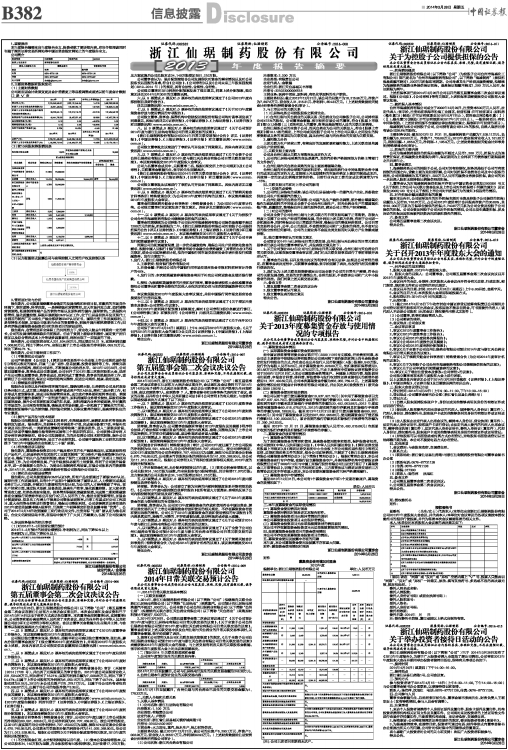 《浙江仙琚制药股份有限公司2014年日常关联交易预计公告》详见《证券时报》、《中国证券报》、《上海证券报》、《证券日报》和巨潮资讯网(www.cninfo.com.cn)。