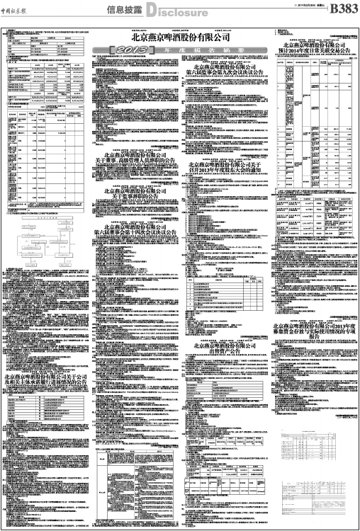 证券简称:燕京啤酒 证券代码:000729 公告编号:2014-006