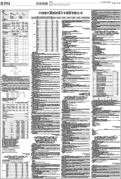 证券代码:000951 股票简称:中国重汽 编号:2014—09