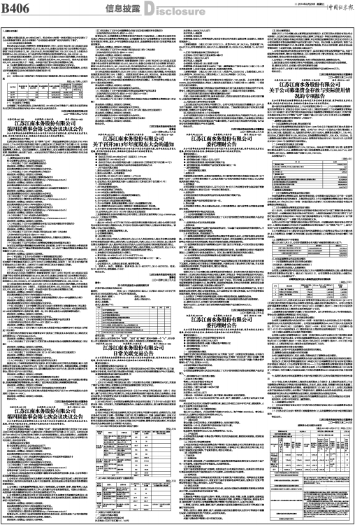 具体内容详见公司公告《江苏江南水务股份有限公司关于召开2013年年度股东大会的通知》(临2014—009)。
