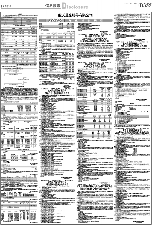具体内容详见与本公告同期刊载于上海证券交易所网站(www.sse.com.cn)的《航天晨光股份有限公司2013年年度报告》与《航天晨光股份有限公司2013年年度报告摘要》。