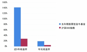 五年期股票型金牛基金与沪深300收益对比