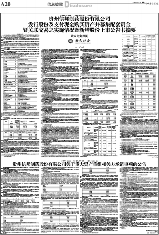 贵州信邦制药股份有限公司关于重大资产重组相关方承诺事项的公告