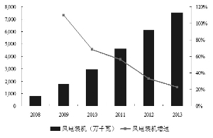 近年来我国风电装机变化情况
