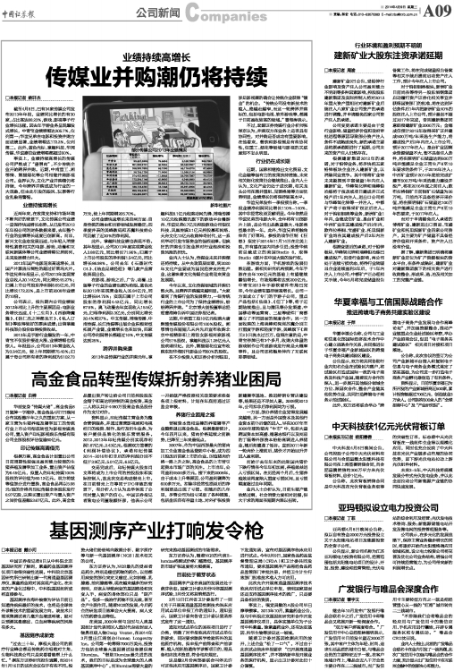 中天科技4月8日晚间公告,公司控股子公司中天光伏材料有限公司与合肥晶澳太阳能科技有限公司在上海签署销售合同,向合肥晶澳销售约300万平方米光伏背板材料,总价1亿元。