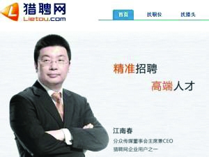 猎聘网是国内最早实现雇主、猎头与职业经理人三方互动的职业发展平台。在2011年获得经纬中国A轮投资后,主要从事以经理人个人用户体验为核心的职业发展平台。
